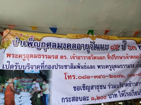 โดยมี นายฉัตรชัย(เอก)อั้งลิ้ม อดีตนายกเทศมนตรีเมืองบ้านสวน อำเภอเมืองชลบุรี พร้อมด้วย สมาชิกสภาองค์การบริหารส่วนจังหวัดชลบุรี เขตอำเภอเมืองชลบุรี ข้าราชการ พ่อค้า นักธุรกิจ แขกผู้มีเกียรติ และ ประชาชนร่วมงานจำนวนมาก โดยภายในงาน ทางพระสงฆ์ได้มีการทำพิธีสวดเจริญพระพุทธมนต์ และ ทางญาติโยมผู้ใจบุญใจกุศล รวมตลอดถึง ลูกศิษย์ของพระครูอุดมธรรมรส ดร. เจ้าอาวาสวัดนอกฯ ได้มีการทำบุญเลี้ยงเพลพระสงฆ์ สามเณร ทุกรูป พร้อมกับได้จัดให้มีการเลี้ยงอาหารนานาชนิด อาทิ ข้าวแกง ก๊วยเตี๋ยว หอยทอด ขนม ผลไม้ เครื่องดื่ม ฯลฯ ให้กับแขกผู้มีเกียรติและประชาชนที่เข้ามาร่วมงานจำนวนมาก