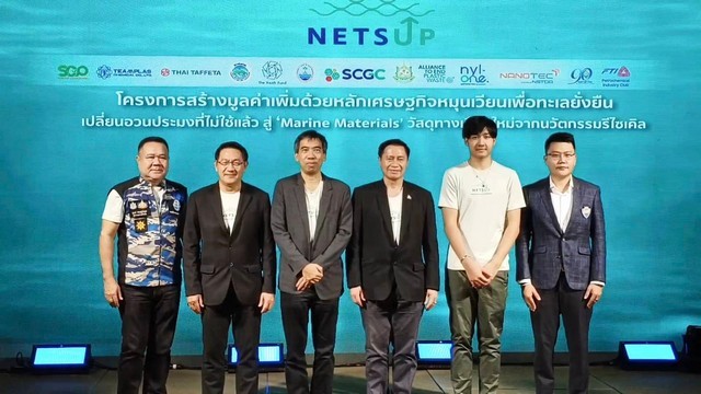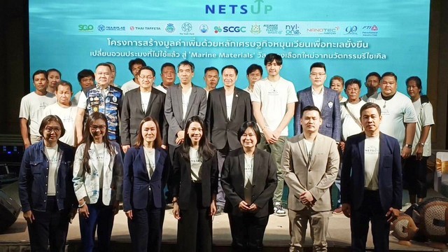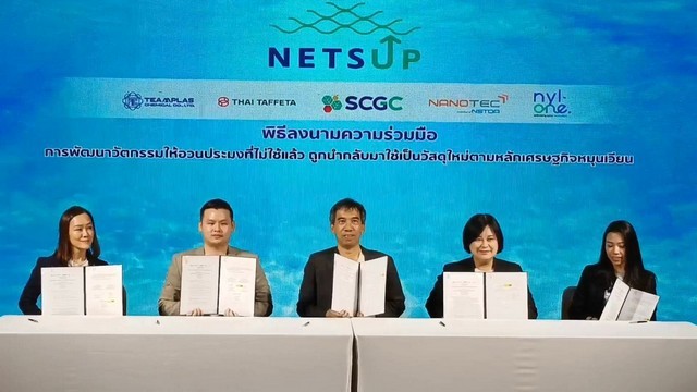 เมื่อวันที่ 16 ก.ย.ที่โรงแรมแคทารี่เบย์ อ.เมือง จ.ระยอง นายพิชิต สมบัติมาก รองปลัดกระทรวงทรัพยากรธรรมชาติและสิ่งแวดล้อม ดร.สุรชา อุดมศักดิ์ ประธานเจ้าหน้าที่สายงานนวัตกรรม และรองกรรมการผู้จัดการใหญ่ บริษัท เอสซีจี เคมิคอลส์ จำกัด (มหาชน) หรือ SCGC ร่วมเปิดตัวโมเดล Nets Up ซึ่งเป็นโมเดลในการสร้างมูลค่าเพิ่มด้วยหลักเศรษฐกิจหมุนเวียนเพื่อทะเลยั่งยืน เปลี่ยนอวนประมงที่ไม่ใช้แล้วสู่ Maine Mateials วัสดุทางเลือกใหม่จากนวัดกรรมริไซเคิล เพื่อนำไปต่อยอดสร้างมูลค่าเพิ่มให้กับภาคอุตสาหกรรมที่เกี่ยวเนื่อง อาทิ ธุรกิจสิ่งทอด้วยการขึ้นรูปเป็นเส้นด้ายและทอเป็นผืนผ้าสำหรับแปรรูปเป็นผลิตภัณฑ์อัปไชเคิด สร้างทางเลือกใหม่ให้กับเจ้าของแบรนด์สินค้า และผู้บริโภคที่ใส่ใจสิ่งแวดล้อม ส่งเสริมการใช้ทรัพยากรให้เกิดประโยชน์สูงสุดตามหลักเศรษฐกิจหมุนเวียน ลดปัญหาขยะทะเลพร้อมสร้างการมีส่วนร่วมเพื่อสิ่งแวดล้อมทางทะเลอย่างยั่งยืนและช่วยลดภาวะโลกร้อน