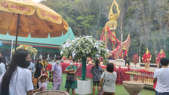 ใกล้หวยออกคนแห่ขอ “เลขเด็ด” องค์ท้าวเวสสุวรรณทรงราหู (ท่านทองล้น)วัดเขาช่องลม กันเนืองแน่นตั้งแต่เช้า