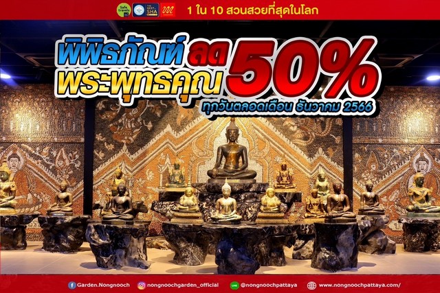 สวนนงนุชพัทยา จัดโปรโมชั่นพิเศษเข้าชมพิพิธภัณฑ์พระพุทธคุณลดราคาบัตรเข้าชม 50 % ทุกวัน ตลอดเดือนธันวาคม
