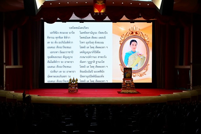 และถวายความเคารพเบื้องหน้าพระรูปสมเด็จพระเจ้าลูกเธอ เจ้าฟ้าพัชรกิติยาภา นเรนทิราเทพยวดี กรมหลวงราชสาริณีสิริพัชร มหาวัชรราชธิดา พระสงฆ์เจริญพระพุทธมนต์ และเจริญจิตภาวนา ถวยเป็นพระราชกุศล และถวายพระพรชัยมงคล บทสวดที่สำคัญที่ใช้ในพิธีเจริญพระพุทธมนต์ฯ ประกอบด้วย บทบูชาพระรัตนตรัย บทนอบน้อมพระพุทธเจ้า บทไตรสรณคมน์ บทนะโม 8 บทโพชฌังคปริตร บทถวายพระพร สมเด็จพระเจ้าลูกเธอฯ บทอนุสรณปาฐะ บทพาหุง บทชยปริตร บทภะวะตุสัพ บทนักขัต และอธิษฐานจิตถวายพระพร ในการนี้ผู้ร่วมพิธีได้ลงนามถวายพระพรผ่านระบบออนไลน์อีกด้วย