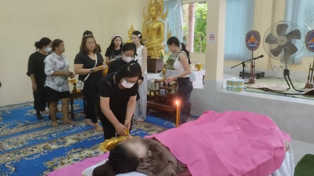 รดน้ำศพเน็ตไอดอลสาว”น้องหวานเจี๊ยบ”ที่โดนยิงดับคาคอนโด ท่ามกลางความเศร้าโศกของญาติพี่น้องและเพื่อนฝูงที่แห่มาร่วมงานจำนวนมาก