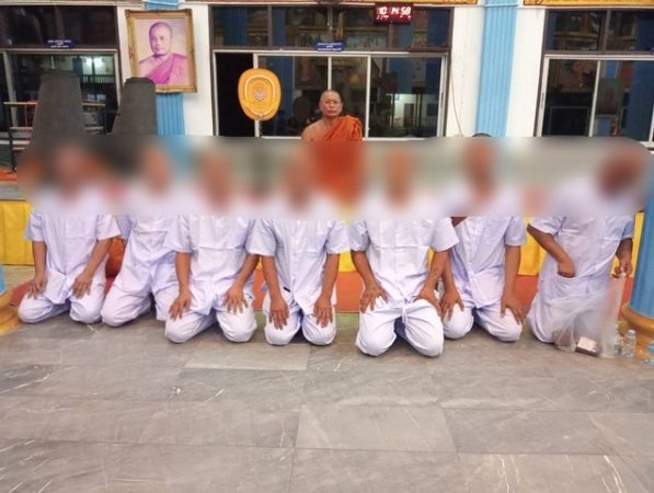 เจ้าคณะตำบลบ่อวินพาเจ้าหน้าที่ตำรวจ-ฝ่ายปกครองบุกจับพระมั่วเสพยาเสพติดภายในวัด ก่อนนำตัวไปลาสิขาบท