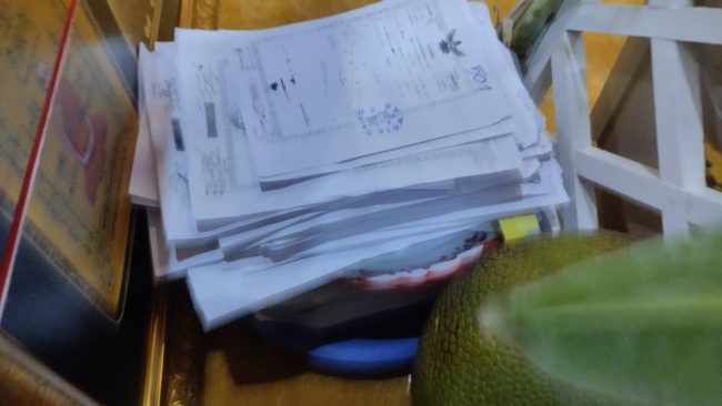 ต่อมาได้มีการแจกโฉนดใบถ่ายเอกสารที่ประชาชนนำมาปลุกเสกกลับไปพร้อมกับถุงทรายปลุกเสก และเครื่องบริกรรมพร้อมทั้งบทสวด แจกคืนให้กับประชาชนที่นำโฉนดมาทำพิธีปลุกเสกเบิกแม่พระธรณี ทำให้ในช่วงนี้ค่อนข้างจะชุลมุนกันเป็นอย่างมาก แต่ทางวัดได้แก้ไขโดยแยกไปตามตัวเลขคิว ทำให้การคืนโฉนดผ่านพ้นไปได้ด้วยดี อีกทั้งทางหลวงพ่อสง่า วัดเขาไม้แดงยังได้แจกพระปิดตาจินดามณีรุ่นแรกหลวงพ่อสง่า(ซึ่งสร้างแจกฟรี)จำนวน1,000องค์ และแจกยันต์กระดาษ พระเจ้าครอบจักรวาล (กระดาษสารพัดกัน)จำนวน999แผ่นให้กับประชาชนที่มาร่วมในพิธีปลุกเสกในครั้งนี้อีกด้วย