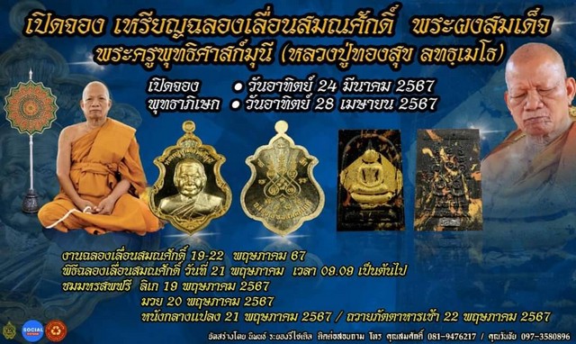 เมื่อเวลา 07.00 น.วันที่ 24 มี.ค.67 ผู้สื่อข่าวรายงานว่า นายนิพนธ์ เสียงจันทร์ ประธานจัดสร้างวัตถุมงคลเหรียญพระผงสมเด็จ ฉลองสมณศักดิ์ และอายุวัฒนมงคลพระครูพุทธิศาสน์มุนี หรือหลวงพ่อหลวงสุข ลทธเมโธ เจ้าอาวาสวัดหนองฆ้อ อ.บ้านค่าย จ.ระยอง เนื่องในโอกาสเลื่อนสมณศักดิ์ และฉลองอายุวัฒนมงคล โดยมีการจัดสร้างจำนวนจำกัด มี ปชช. ที่ศรัทธาในหลวงพ่อทองสุข แห่มาจองคิวเพื่อจับสลากรับเหรียญวัตถุมงคลแน่นวัด
