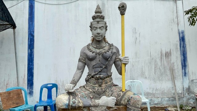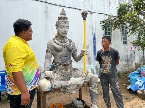 เมื่อเวลา 13.00 นวันที่ 26 มีนาคม 2567 ผู้สื่อข่าวได้ลงพื้นที่ตรวจสอบที่บริเวณบ้านเลขที่ 138/35 หมู่ 9 ตำบลบางพระอำเภอศรีราชาจังหวัดชลบุรี ผู้สื่อข่าวพบ นายประพันธ์ พลเมืองรัตน์ อายุ72 ปี ช่างปั้นหุ่นพญายม เปิดเผยว่า การปั้นหุ่นพญายมในปีนี้ได้ดำเนินการมาแล้วกว่าร้อยละหกสิบ โดยในปีนี้หุ่นพญายมมีหน้าตาที่ใจดี มีรอยยิ้มเล็กน้อย ผิวกายจะมีสีแดงอ่อนๆ ซึ่งเรียกว่าเป็นภาคกึ่งเทวดาทีมีความสมส่วนสง่างาม