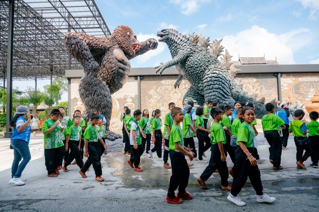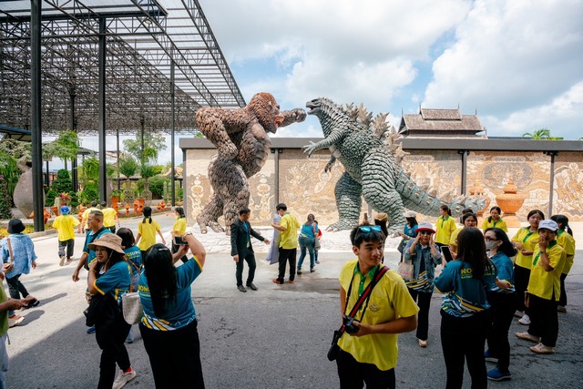 วันนี้นักท่องเที่ยวมาร่วมกันสนุกสนานกับรูปปั้นก็อดซิลล่า VS คิงคอง สร้างความตื่นตาตื่นใจให้กับเด็กนักเรียน นักท่องเที่ยวชาวไทยและชาวต่างชาติ มาถ่ายภาพเป็นที่ระลึก การสร้างรูปปั้นดังกล่าวเพื่อเป็นการต้อนรับหนังเรื่อง Godzilla x Kong : The New Empire ซึ่งกำลังเข้าฉายในโรงภาพยนตร์