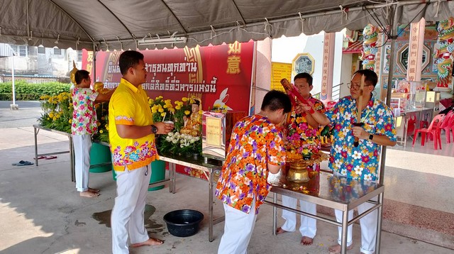เมื่อเวลา15.30น.(13เมษายน2567)ที่พุทธสมาคมสัจจะธรรมสงเคราะห์พ้งไล้ซาจับซาเซียวเกาะ โรงเจบึงไร่ 1 ต.บึง อ.ศรีราชา นายอำมาตย์ โสภณารมณ์ นายกพุทธสมาคมสัจจะธรรมสงเคราะห์พ้งไล้ซาจับซาเซียวเกาะ โรงเจบึงไร่ 1พร้อมด้วยคณะกรรมการบริหารฯได้จัดให้มีพิธีสรงน้ำพระพุทธรูปและองค์เทพเจ้ารวมถึงผู้สูงอายุในพื้นที่ตำบลบึง ขึ้น ณ ลานหน้าวิหารเช็งเล้งตั่ง โดยอัญเชิญองค์ฮ้อเฮียฮุ้งเซี้ยโจ้ว,องค์พระโพธิสัตว์เจ้าแม่กวนอิม,องค์หลวงปู่ทวด,องค์สมเด็จพุฒาจารย์โตพรหมรังษี ประดิษฐ์ฐานบนแท่นบูชาด้านหน้าวิหารเพื่อให้ประชาชนในพื้นที่ตำบลบึงร่วมสรงน้ำกัน