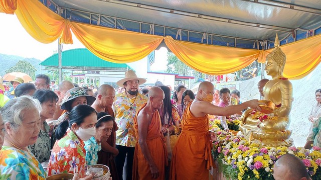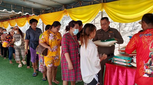 วัดเขาช่องลมจัดสรงน้ำพระพร้อมแจกข้าวสารจำนวน1ตันและสลากกินแบ่งรัฐบาล500ใบให้กับประชาชนที่มาทำบุญในวันขึ้นปีใหม่ไทย