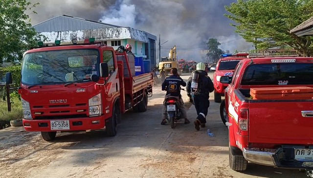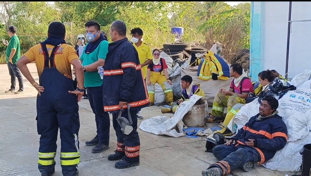 นายก อบจ.ระยอง ลงพื้นที่เหตุเพลิงไหม้โรงงานกำจัดกากสารเคมี หมู่ 4 บ้านหนองพะวา ต.บางบุตร อ.บ้านค่าย จ.ระยอง