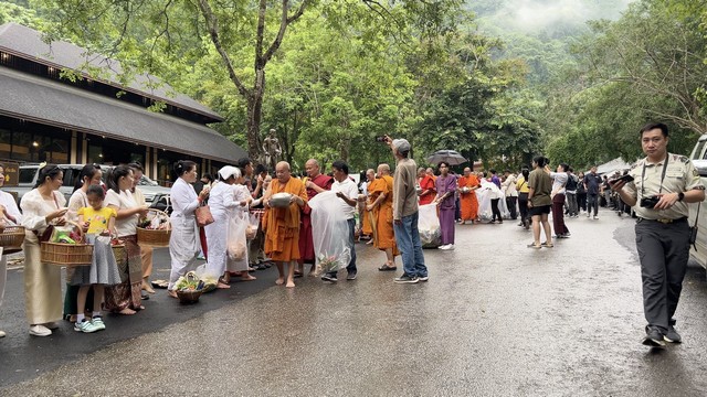 วันนี้ (23 มิ.ย.) ที่อุทยานแห่งขาติถ้ำหลวง-ขุนน้ำนางนอน (เตรียมการ) ต.โป่งผา อ.แม่สาย จ.เชียงราย ดร.ฉวีวรรณ คำพา นายกสมาคมส่งเสริมการเลี้ยงไก่แห่งประเทศไทยในพระบรมราชูปถัมภ์ ประธานฝ่ายฆาวาาส รวมทั้งนายณรงค์พล คิดอ่าน นายอำเภอแม่สาย นายปัณณวิชญ์ ภูริรักษ์พิติกร หัวหน้าอุทยานแห่งชาติถ้ำหลวงฯ และผู้ที่เกี่ยวข้องทุกฝ่าย ฯลฯ อดีตสมาชิกทีมฟุตบอลเยาวชนหมูป่าอะคาเดมีนำโดยยายเอกพล จันทะวงษ์ หรือโค้ชเอก ทีประสบเหตุติดอยู่ในถ้ำหลวงเมื่อวันที่ 23 มิ.ย.2561 ก่อนได้รับการช่วยเหลือออกมาได้อย่างปลอดภัย ได้ร่วมทำบุญเพื่อน้อมรำลึกถึงเหตุการณ์และอุทิศส่วนบุญส่วนกุศลไปถึงผู้ที่ล่วงลับไปแล้ว ท่ามกลางฝนที่ตกลงมาเหมือนอยู่ในเหตุการณเมื่อ 6 ปีก่อน
