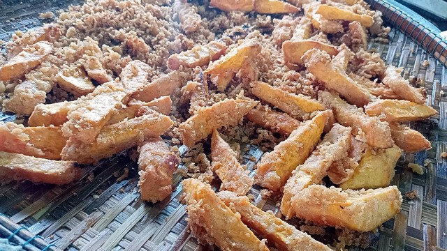 โดยทางร้านก็ยังต้องขายราคาเดิม กล้วยลูกนึงจะผ่าครึ่ง ขายในราคา 1 อย่าง 30 บาท2 อย่าง 40 3 อย่าง 50 เหมือนเดิม ไม่ขึ้นราคา เพราะสงสารลูกค้า อยากให้ได้กินของดีๆ ซึ่งนอกจากกล้วยทอดแล้ว ทางร้านก็ยังมี มันทอด เผือกทอด ไข่นกกระทาทอดด้วยและข้าวเม่าทอด