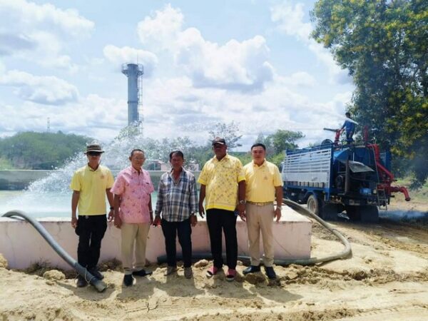 “นายกแห้ง” พร้อมคณะผู้บริหาร ระดมเติมน้ำ้ใส่บ่อพักน้ำเพื้อผลิตน้ำประปาช่วยเหลือชาวบ้านประสบภัยแล้ง