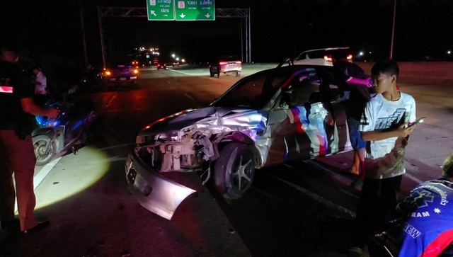 #ชลยุรี หนุ่มเคราะห์ร้าย จอดรถข้างทางนั่งท้ายกระบะ ถูกเก๋งไถลมาชนเจ็บหนัก