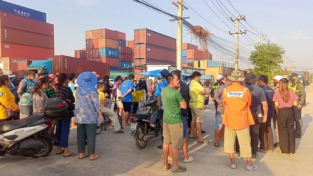 ชาวบ้านแหลมฉบัง รวมตัวประท้วงลานตู้คอนเทนเนอร์ย่านแหลมฉบัง หลังรถบรรทุกจอดกีดขวางจราจร ชาวบ้านหวั่นอันตราย