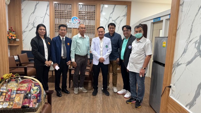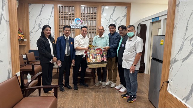 ณพล บริบูรณ์ นำทีมอวยพรปีใหม่ นพ.นำพล แดนพิพัฒน์ ผอ.โรงพยาบาลชลบุรี