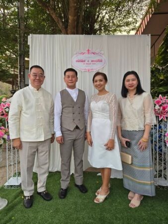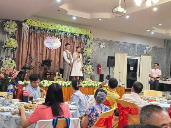 จักรพงศ์ ชื่นดวง หัวหน้าพรรคไทยชนะ อวยพรในงานเลี้ยงผูกข้อมือ มณีรัตน์ คณารีย์-พงษ์ศักดิ์ มานะจิต