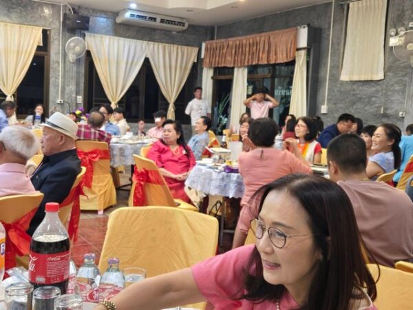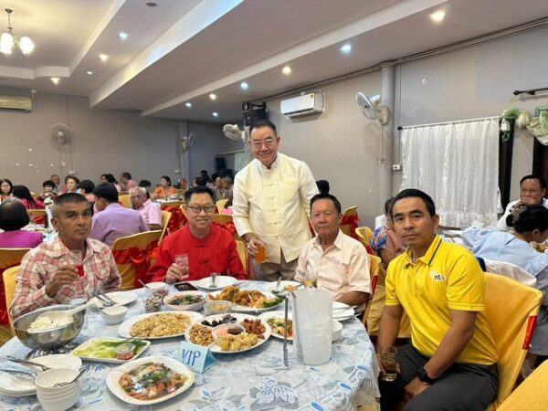 นอกจากนี้ นายจักรพงศ์ ชื่นดวง หัวหน้าพรรคไทยชนะ ยังได้ขึ้นเวทีกล่าวอวยพรในงานเลี้ยงผูกข้อมืออีกด้วย ท่ามกลางผู้มาร่วมงานจำนวนมาก