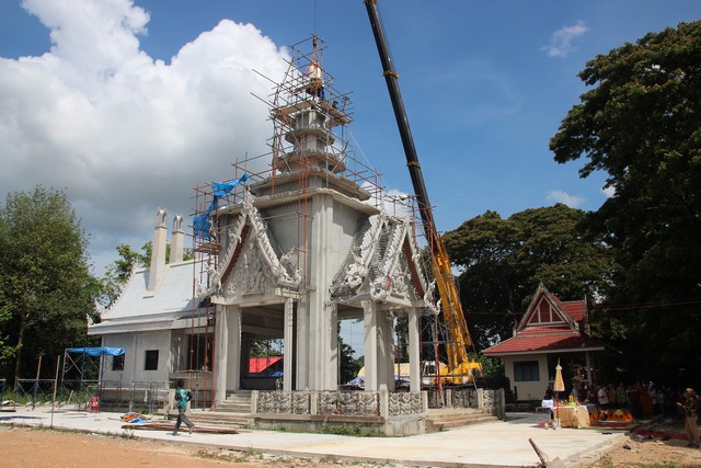 โดยวันนี้ได้ยกยอดเมรุขึ้นประดิษฐานบนยอดบุษบกเมรุ ณ. วัดพิบูลสัณหธรรม เพื่อบ่งบอกให้ประชาชนและชาวบ้าน ได้ทราบถึงการก่อสร้างของเมรุและความคืบหน้า หลังจากนั้นทางวัดได้มีการจุดประทัด