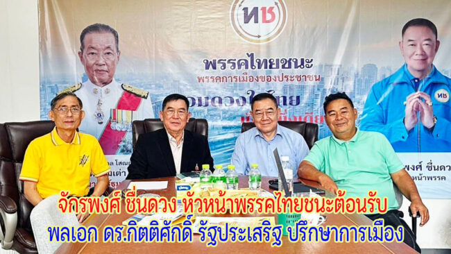 จักรพงศ์ ชื่นดวง หัวหน้าพรรคไทยชนะต้อนรับ พลเอก ดร.กิตติศักดิ์ รัฐประเสริฐ พร้อมพวกปรึกษาสถานการณ์การเมืองในปัจจุบัน