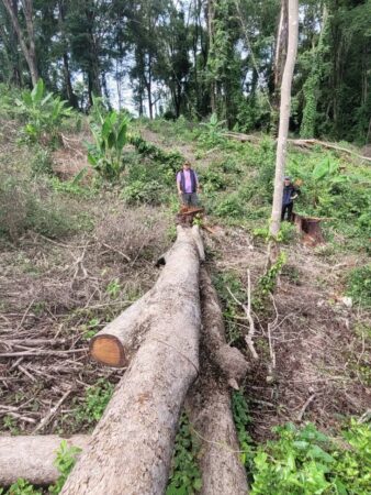 สำนักงานทรัพยากรธรรมชาติและสิ่งแวดล้อมจังหวัดระยอง ลงพื้นที่ตรวจสอบการลักลอบตัดไม้หวงห้ามและบุกรุกแผ้วถางป่า เขตอำเภอบ้านค่าย จังหวัดระยอง