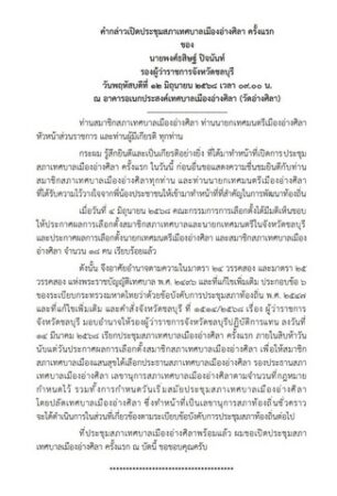พงศ์ธสิษฐ์ ปิจนันท์ รอง ผวจ.ชลบุรีเปิดการประชุมสภาเทศบาลเมืองอ่างศิลาครั้งแรก พร้อมประดับขีดนายกเทศมนตรี และสมาชิกสภาเทศบาล แนะพัฒนาคุณภาพชีวิต และสร้างปลอดภัยในชีวิตและทรัพย์สิน สร้างเศรษฐกิจให้แข็งแรง