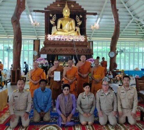 เมื่อวันที่ 07 กรกฎาคม 2568 เวลาประมาณ 09.00น. ณ วัดป่าศรัทธานิมิต ม.5 ต.เขาไม้แก้ว อ.บางละมุง จ.ชลบุรี ดร.หนึ่งฤทัย พูลลาภ ผู้อำนวยการสำนักงานพระพุทธศาสนาจังหวัดชลบุรี พร้อมด้วย นายจักรกฤษณ์ วิสุทธิศิริ ผู้อำนวยการกลุ่มส่งเสริมพระพุทธศาสนาและกิจการพิเศษ นำตราตั้งวัด มามอบให้กับ วัดป่าศรัทธานิมิต ตามประกาศสำนักงานพระพุทธศาสนาแห่งชาติ เรื่อง การตั้งวัดในพระพุทธศาสนา
