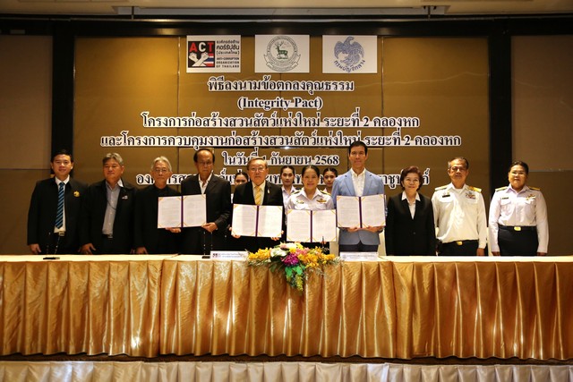 องค์การสวนสัตว์แห่งประเทศไทย ในพระบรมราชูปถัมภ์ (อสส.) จัดประชุม Kick off Meeting และพิธีลงนามบันทึกข้อตกลงคุณธรรม (Integrity Pact) โครงการก่อสร้างสวนสัตว์แห่งใหม่ ระยะที่ 2 คลองหก และโครงการควบคุมการก่อสร้างสวนสัตว์แห่งใหม่ ระยะที่ 2 คลองหก ร่วมกับผู้สังเกตการณ์ที่ได้รับมอบหมายจากคณะกรรมการความร่วมมือป้องกันการทุจริต