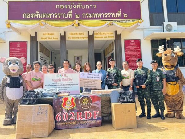 สิ่งของและเงินบริจาค อาทิ ชุดสื้อกั๊กเกาะเสริมเหล็ก 20 ชุด เครื่องปั่นไฟ 3 เครื่อง เครื่องซักผ้า 2 เครื่อง และรองเท้า 600 คู่ ได้มอบแก่โรงเรียนบ้านโนนยาง กองพันทหารราบที่ 2 กรมทหารราบที่ 6 และโรงพยาบาลน้ำขุ่น อ.น้ำขุ่น จ.อุบลราชธานี เพื่อบรรเทาความเดือดร้อน พร้อมสร้างขวัญกำลังใจให้แก่เด็กนักเรียน ครู บุคลากรทางการศึกษา ทหาร ตลอดจนประชาชนในพื้นที่