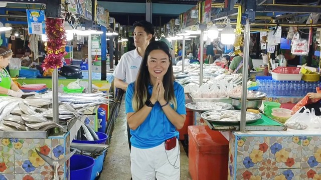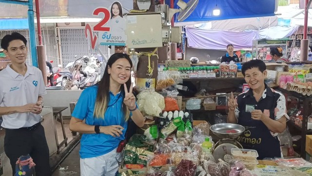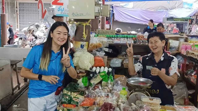 หญิงแกร่ง “จิ๊ป อรุชา” ฟ้าประทานชัย ผู้สมัครรับเลือกตั้ง ส.อบจ.ระยอง เขต 5 เดินตลาดเช้าอ้อนขอคะแนนพ่อค้าแม่ค้าตลาดสดแม่แดง