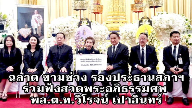 ฉลาด ขามช่วง รองประธานสภาผู้แทนราษฎร คนที่สอง ณพล บริบูรณ์ คณะทำงาน ร่วมฟังสวดพระอภิธรรมศพ พล.ต.ท.วิโรจน์ เปาอินทร์