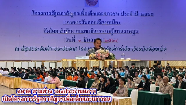 เมื่อวันที่ 1 ธันวาคม ที่ห้องประดับฟ้าประดับดาว โรงแรมเพชรรัชต์การ์เด้น อำเภอเมือง จังหวัดร้อยเอ็ด นายฉลาด ขามช่วง รองประธานสภาผู้แทนราษฎร คนที่สอง เป็นประธานในพิธีเปิดและบรรยายพิเศษโครงการรัฐสภาสัญจร เพื่อเด็กและเยาวชนประจำปี 2569 ภาคตะวันออกเฉียงเหนือ โดยมีนายมังกร ยนต์ตระกูล สมาชิกสภาผู้แทนราษฎรแบบบัญชีชื่อพรรคเสรีรวมไทย นายรณวริทธิ์ ปริยฉัตรตระกูล อดีตสมาชิกวุฒิสภาเข้าร่วมในพิธีเปิดด้วย
