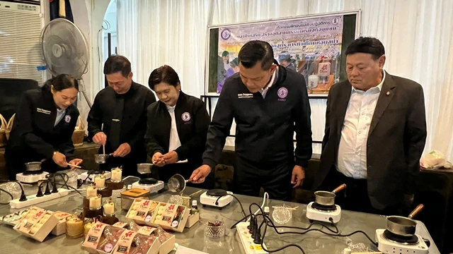 เมื่อเวลา 14.00 น.วันที่ 11 ธันวาคม 2568 -นายธนกร วังบุญคงชนะ รัฐมนตรีว่าการกระทรวงอุตสาหกรรม พร้อม น.ส.พลอยรภัสร์ สิงห์โตทอง ที่ปรึกษารมว.อุตสาหกรรม ปลัดกระอุตสาหกรรม อุตสาหกรรมจ.ชลบุรี พร้อมทีมงานกระทรวงอุตสาหกรรม ได้เดินทางมาที่สมาคมกลุ่มอาชีพการเกษตรจังหวัดชลบุรี ม.1 ตหนองชาก อ.บ้านบึง จ.ชลบุรี เพื่อเยี่ยมชมการฝึกอบรมกลุ่มอาชีพระยะสั้น ของประชาชนจำนวนกว่า 300 คน ในชุมชนพื้นที่ตำบลหนองอิรุณ อำเภอบ้านบึง จังหวัดชลบุรี ที่ได้เข้าร่วมการฝึกอบรมเชิงปฏิบัติการ สร้างอาชีพเสริมอุตสาหกรรมเศรษฐกิจชุมชน โดยได้เปิดหลักสูตร การทำเทียนหอมสปา ผ้ามัดย้อม ตะกร้าสานพลาสติกและดอกไม้จันทน์ เน้นการ สร้างอาชีพเสริม เพิ่มทักษะใหม่ ๆ เพื่อสร้างอาชีพและสร้างรายได้ให้ชุมชน โดยมี นายจิรวุฒิ สิงห์โตทอง ส.ส.ชลบุรี เขต.4 นายชัยพร แพภิรมรัตน์ รอง.ผวจ.ชลบุรี นายอำเภอบ้านบึง พ.ต.อ.กฤษณ์ มาสุขผกก.สภ.บ้านบึง น.ส.จุมพิตา สิงห์โตทอง กำนันต.หนองอิรุณ ฯลฯร่วมให้การต้อนรับ
