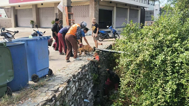 ในที่เกิดเหตุพบสุนัขเพศเมียสีน้ำตาลอายุ 7-8 ปี ตกอยู่ในคลองความสูงประมาณ 2 เมตรและบริเวณนั้นมีทุ่งหญ้าเป็นจำนวนมากเจ้าหน้าที่ อาสากู้ภัยและเจ้าหน้าที่ พร้อมด้วยประชาชน จึงนำเชือก Belt และ บันได เพื่อลงไปช่วยสุนัขตัวดังกล่าว และ นำตัวสุนัขขึ้นมาด้านบนใช้เวลานานกว่า 20 นาทีจึงสามารถนำสุนัขตัวดังกล่าวนั้นขึ้นมาได้โดยจากการตรวจสอบพบว่าสุนัขตัวดังกล่าวนั้นตาบอดมองไม่เห็นและในระหว่างการช่วยเหลือนั้นสุนัขตัวดังกล่าวหลังจากขึ้นมาด้านบนแล้วก็พลาดพลั้งเดินตกลงไป ในคลองอีกรอบเจ้าหน้าที่จึงทำการช่วยเหลืออีกครั้ง