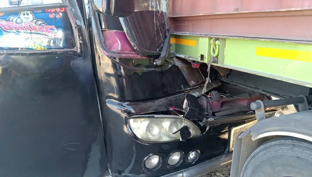 รถบัสรับส่งพนักงานพุ่งชนท้ายรถพ่วง 18 ล้อที่จอดอยู่ข้างทางทำให้มีผู้ได้รับบาดเจ็บหลายราย