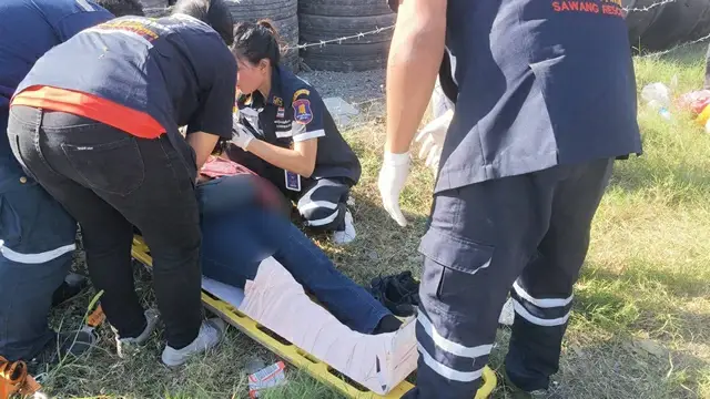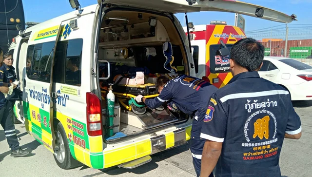 ในที่เกิดเหตุ พบรถพ่วง 18 ล้อ ยี่ห้อ Hino สีขาวหมายเลขทะเบียนส่วนหัว72-0070 สมุทรปราการ ทะเบียนส่วนหางรถพ่วง ทะเบียน 72-2739 สมุทรปราการ และก็การพบรถบัส หมายเลขทะเบียน30-1059 ระยองบริเวณด้านหน้าพังยับเยิน เจ้าหน้าที่ จึงทำการปฐมพยาบาลผู้บาดเจ็บทั้งหมด 10 ราย ซึ่งผู้บาดเจ็บทั้งหมดเป็นชาวเมียนมาร์ ผู้บาดเจ็บทั้ง 10 รายนั้น มีแผลถลอกตามร่างกายเพียงเล็กน้อย จึงให้เจ้าหน้าที่ ทำการปฐมพยาบาล ก่อน นำส่งโรงพยาบาลเพื่อรักษาอาการต่อไป