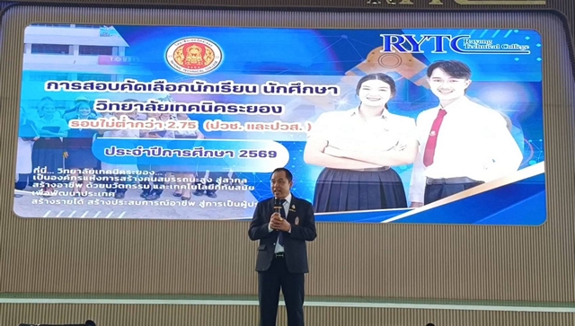 เมื่อเวลา 09.00 น. วันที่ 17 ม.ค.69 ที่โดมเอนกประสงค์ วิทยาลัยเทคนิคระยอง ต.ท่าประดู่ อ.เมือง จ.ระยอง ผู้สื่อข่าวรายงานว่า วิทยาลัยเทคนิคระยอง ได้เปิดให้มีการสอบแข่งขันเข้าศึกษาต่อในระดับ ปวช. และ ปวส. ระดับเกรดเฉลี่ย 2.75 ทำข้อสอบผ่านทางโทรศัพท์มือถือ และกรณีที่นักเรียน นักศึกษา ไม่มีโทรศัพท์มือถือ หรือโทรศัพท์ไม่มีสัญญาณอินเทอร์เน็ต หรือแบตเตอรี่หมด ก็จะมีแทปเลตให้ใช้สอบแทนโทรศัพท์มือถือด้วย ซึ่งหลังสอบเสร็จ ก็จะสามารถทราบผลสอบได้ทันที โดยมีนักเรียน นักศึกษาสมัครเข้าสอบกว่า 700 คน ท่ามกลางผู้ปกครองที่มาลุ้นให้กำลังใจบุตรหลานจำนวนมาก