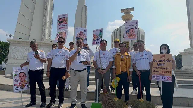 ซึ่งเป็นเสาหลักของประชาธิปไตย เพื่อเรียกคะแนนเสียงให้กับผู้ลงสมัคร สส.บัญชีรายชื่อ หรือปาร์ตี้ลีสต์ เบอร์ 17 และยังช่วยกันทำความสะอาดบริเวณอนุสาวรีย์ประชาธิปไตย เพื่อปัดกวาดสิ่งไม่ดีออกจากบ้านเมือง รวมทั้งนมัสการพระเจ้าตากสินมหาราช เนื่องจากวันที่ 17 เป็นวันพระราชสมภพ พระเจ้าตากสินมหาราช และพรรคไทยชนะจับได้เบอร์ 17 ถือว่าเป็นเลขนำโชค และหวังว่าจะชนะศึกการเลือกตั้ง สส.ในครั้งนี้