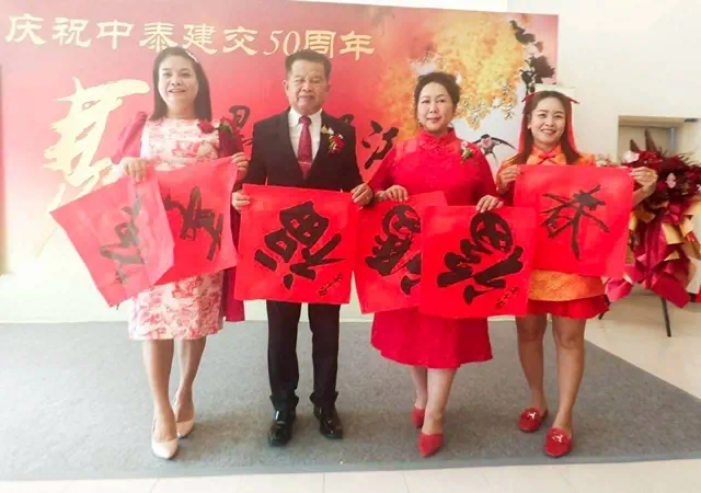เนื่องมาจากความสัมพันธ์ระหว่างประเทศไทยและสาธารณะรัฐประชาชาชนจีนครบรอบ 50 ปี จึงได้จัดงานเฉลิมฉลองครบรอบ 76 ปีแห่งการสถาปนาสาธารณรัฐประชาชนจีน และ 50 ปีแห่งการสถาปนาความสัมพันธ์ทางการทูตไทย-จีน ได้มีการจัดนิทรรศการศิลปะการเขียนพู่กันจีน-ไทย “กลิ่นหมึกแห่งแม่น้ำแม่โขง” ครั้งที่ 2 พร้อมทั้งเชิญชวนผู้รักศิลปะการเขียนพู่กันมาร่วมงานในครั้งนี้ด้วย