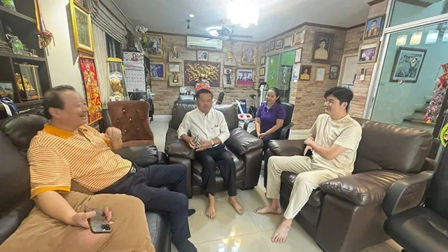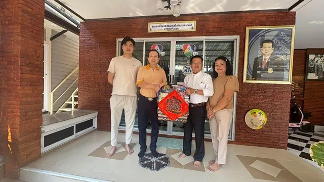 ชนะพล คลังรุ่งเรือง นายกสมาคมการค้าไทย-เหลียวหนิง นำกระเช้าของขวัญมามอบให้ ณพล บริบูรณ์-นภชนก เหมือนนามอญ เนื่องในเทศกาลตรุษจีนหรือวันขึ้นปีใหม่จีน