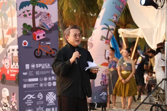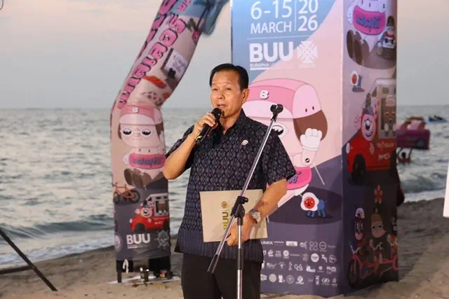 ในโอกาสนี้ช่วงพิธีเปิดโครงการฯ คุณอิสระ ริ้วตระกูลไพบูลย์ รองผู้อำนวยการสำนักงานศิลปวัฒนธรรมร่วมสมัยให้เกียรติมาเป็นประธานกล่าวเปิดโครงการฯ พร้อมด้วยคุณณรงค์ชัย คุณปลื้ม นายกเทศมนตรีเมืองแสนสุข กล่าวต้อนรับฯผู้เข้าร่วมโครงการฯ รองศาสตราจารย์ ดร.เสกสรรค์ ตันยาภิรมย์ คณบดีคณะศิลปกรรมศาสตร์ กล่าวรายงานโครงการฯ คุณวิทยา คุณปลื้ม นายกองค์การบริหารส่วนจังหวัดชลบุรี กล่าวสนับสนุนการจัดโครงการฯ และนายวรพจน์ เอี่ยมรักษา รองอธิการบดีฝ่ายวิทยาเขตสระแก้ว มหาวิทยาลัยบูรพา มอบของที่ระลึกให้ผู้มีเกียรติฯ เมื่อวันที่ 6 มีนาคม พ.ศ. 2569 ณ ชายหาดบางแสน (หลังศาลเจ้าพ่อแสน)