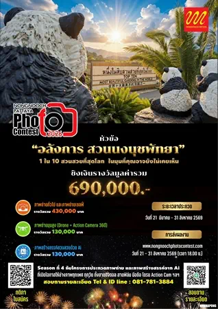 โครงการ “Nongnooch Photo Contest 2026” ครั้งที่ 4 จึงนับเป็นอีกหนึ่งเวทีสำคัญ ที่จะรวมพลังความคิดสร้างสรรค์ของช่างภาพ เพื่อถ่ายทอด “ความอลังการ” ของสวนนงนุชพัทยาในมิติใหม่ และสร้างแรงบันดาลใจให้กับนักท่องเที่ยวจากทั่วโลก ร่วมเป็นส่วนหนึ่งของการบันทึกความงดงามระดับโลก ผ่านเลนส์ของคุณ วันนี้ สอบถามรายละเอียดเพิ่มเติมได้ที่:https://nongnoochphotocontest.com/