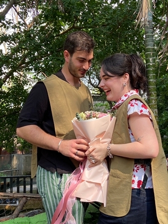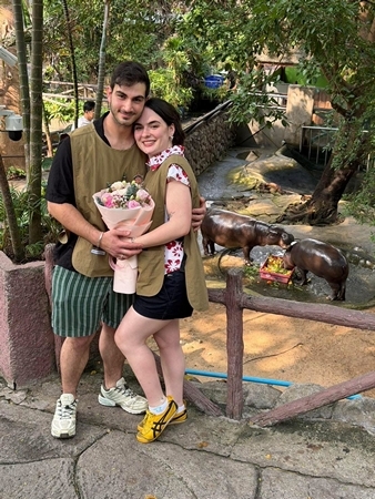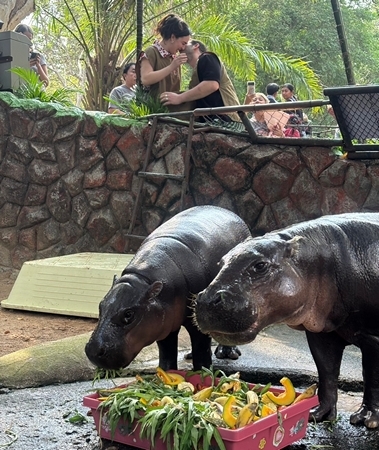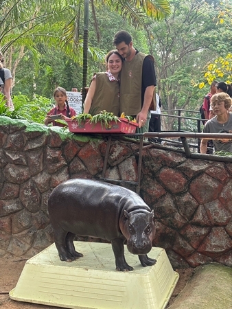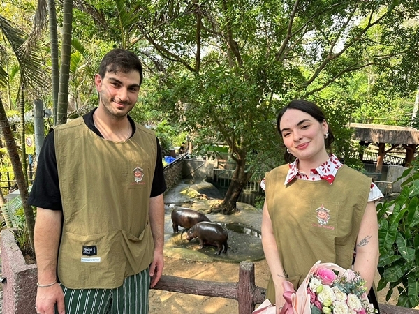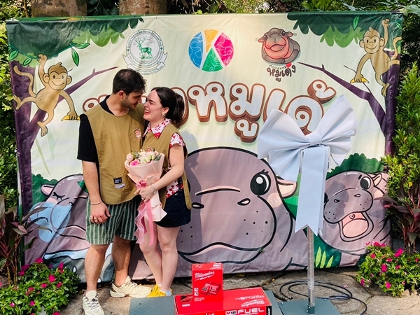 สวนสัตว์เปิดเขาเขียว จ.ชลบุรี — กลิ่นอายความรักจากแดนไกลมาอบอวลถึงชลบุรี เมื่อคู่รักนักท่องเที่ยวหนุ่มสาวชาวอิตาลีตัดสินใจเลือกสวนสัตว์เปิดเขาเขียวเป็นสถานที่สร้างความทรงจำสำคัญในชีวิต ด้วยการทำเซอร์ไพรส์ขอแต่งงานกันบริเวณหน้าส่วนแสดงของ “น้องหมูเด้ง” ฮิปโปโปเตมัสแคระขวัญใจมหาชนที่โด่งดังไปทั่วโลก