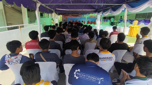 โดยมี ดร.พีรพงษ์ พันธ์โสดา ผู้ประสานงานกลุ่มจังหวัดภาคตะวันออก (ผู้อำนวยการวิทยาลัยเทคนิคชลบุรี) คณะผู้บริหารครูและนักเรียนวิทยาลัยเทคนิคบางแสน เข้าร่วมพิธีเป็นจำนวนมาก