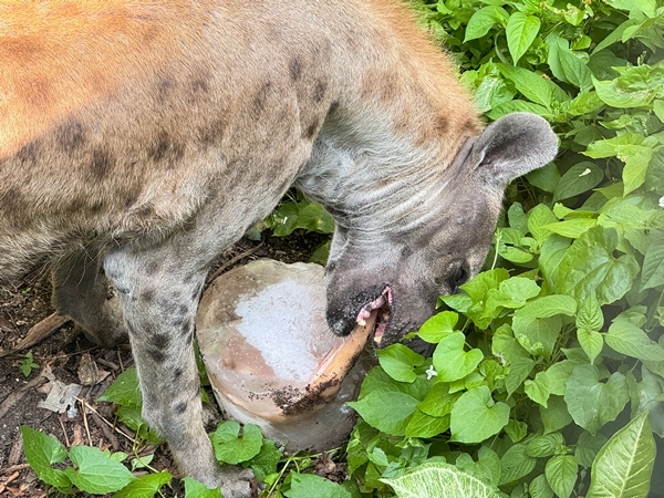 พร้อมกันนี้ เจ้าหน้าที่ยังได้ออกแบบการให้อาหารในรูปแบบ “การซ่อนอาหาร” (Food Enrichment) เพื่อกระตุ้นให้สัตว์ใช้ทักษะตามธรรมชาติ ทั้งการค้นหา การดมกลิ่น และการเคลื่อนไหวร่างกายในการเข้าถึงอาหาร อันเป็นการส่งเสริมพฤติกรรมตามธรรมชาติอย่างเหมาะสม