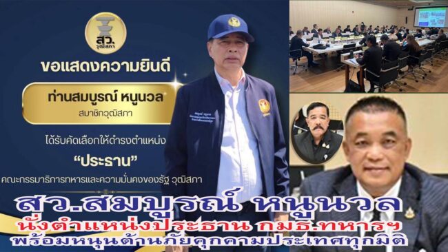 สมบูรณ์ หนูนวล นั่งตำแหน่งประธาน กมธ.ทหารและความมั่นคงของรัฐ วุฒิสภา พร้อมหนุนทุกมิติต้านภัยคุกคามประเทศทุกรูปแบบ คณะ สว.เตรียมลงพื้นที่ชายแดนใต้แก้ปัญหาให้เป็นรูปธรรม