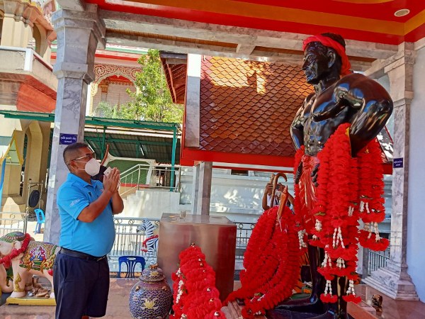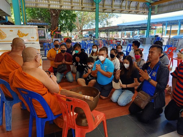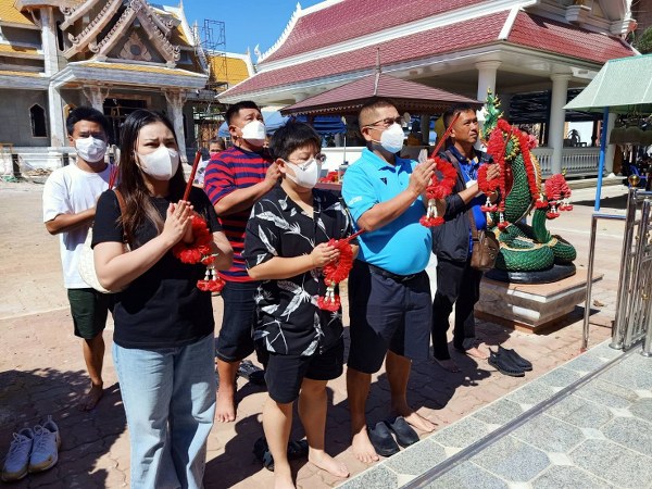 พร้อมด้วย ส.จ.สุภึพันธ์ หอมหวล (สจ.แอ้) ได้เข้าไปทำการกราบไหว้สักการะบูชา ” พ่อปู่องค์ดำ” สิ่งศักดิ์สิทธิ์ประจำวัดราษฎร์ศรัทธาธรรม(ท้ายดอน)และบริจาคเงินถวายพ่อปู่องค์ดำอีกจำนวน 10,000 บาท และ ก่อนจะเดินทางกลับได้ควักเงินมอบให้กับเด็กๆ ภายในวัดคนละ 1,000 บาท รวมจำนวน 7 คนด้วยกัน โดยทางอดีต ส.ท.ภาสกร หอมหวล ได้กล่าวว่า ช่วงวันขึ้นปีใหม่ พ.ศ.2565 ผมไม่ได้เดินทางไปเที่ยวที่ไหน มีแต่เดินสายทำบุญอย่างเดียว สำหรับในวันขึ้นปีใหม่ พ.ศ.2565 ผมขออวยพรให้ประชาชนทุกท่านได้มีความสุขตลอดปีและตลอดไป