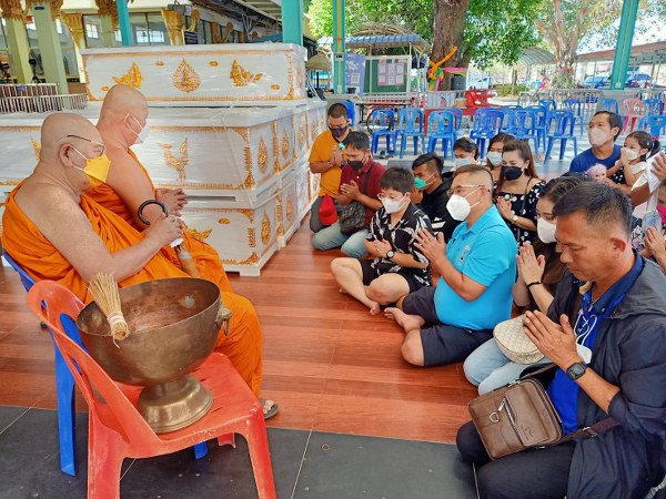 # ผู้สื่อข่าวรายงานว่า เวลา 12.00 น.วันเสาร์ที่ 1 มกราคม พ.ศ.2565 “วันขึ้นปีใหม่” ณ วัดราษฎร์ศรัทธาธรรม(ท้ายดอน) ตำบลแสนสุข อำเภอเมืองชลบุรี จังหวัดชลบุรี นายภาสกร หอมหวล ( ส.ท.เหี่ยว )อดีตสมาชิกสภาเทศบาลเมืองแสนสุข และอดีตคนสนิทผู้ใกล้ชิดกับนายสมชาย คุณปลื้ม (กำนันเป๊าะ) อดีตนายกเทศมนตรีเมืองแสนสุข คนดังแห่งภาคตะวันออก พร้อมด้วย นางสาวสุภีพันธ์ หอมหวล ( สจ.แอ้ ) สมาชิกสภาองค์การบริหารส่วนจังหวัดชลบุรี เขตอำเภอเมืองชลบุรี (บุตรสาว) ได้ซื้อโลงศพจำนวน 11 ใบ