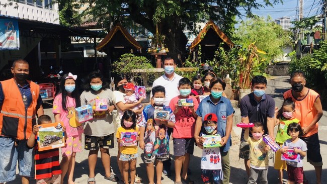 ชลบุรี สจ.เอ็ม ลุยแจกของขวัญวันเด็ก ตามชุมชนในเขต พร้อมรณรงค์สวมใส่หน้ากากอนามัยตลอดเวลา