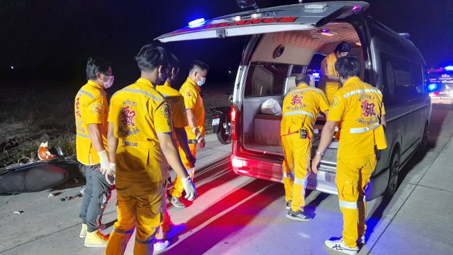 เมื่อเวลา00.30น.วันที่ 9 ม.ค.2565 ร.ต.ท.ราชัน ไชยพิณ รองสว.เวรสอบสวนสภ.หนองขาม ได้รับแจ้งจากศูนย์วิทยุเพียวเยี้ยงไท้ศรีราชาว่ามีหญิงสาวขี่รถจยย.ล้มคว่ำเองหมดสติปลุกไม่ตื่นที่ซอยข้างร้านสะดวกซื้อข้างตลาดสดเจ้าพระยา-เขาดินบน หมู่10ต.หนองขามอ.ศรีราชา โดยทางอาสาหน่วยกู้ภัยเพียวเยี้ยงไท้ศรีราชาได้ปฐมพยาบาลทำบาดแผลที่ศีรษะที่แตกเป็นแนวยาวและลึกเลือดไหลไม่หยุด และเลือดออกมาที่ช่องหู หมดสติ ปลุกไม่ตื่น โดยทราบชื่อว่านางสาวศิวพร บุตราช อายุ41ปี หลังปฐมพยาบาลทำบาดแผลแล้วรีบนำส่งโรงพยาบาลพญาไทศรีราชา ให้แพทย์ทำการรักษาอย่างเร่งด่วน เมื่อทางอาสากู้ภัยเพียวเยี้ยงไท้ศรีราชา